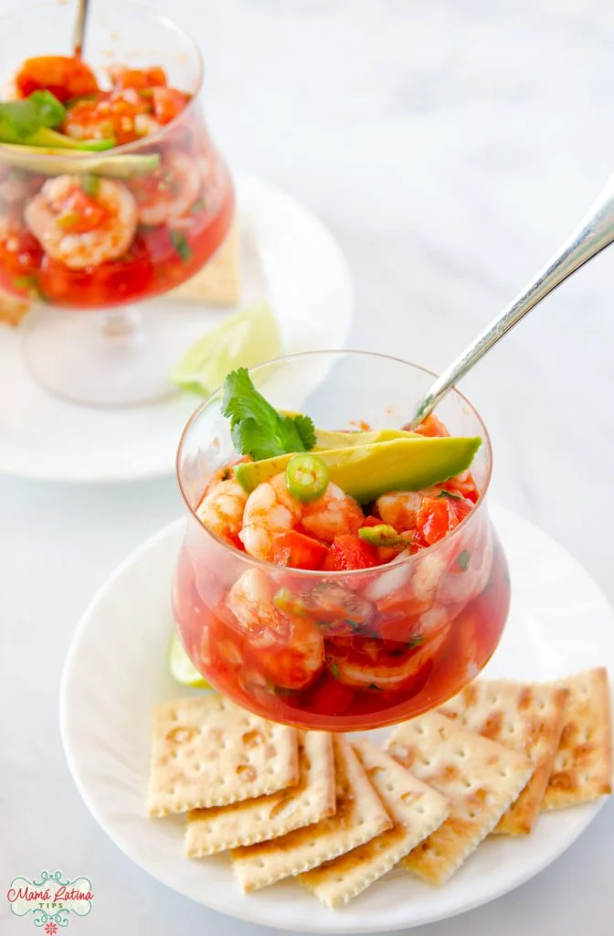 También conocido como cocktail de camarones, es un platillo que se sirve frío y es una combinación de camarones, jugo de limón, verduras y salsa de jitomate.