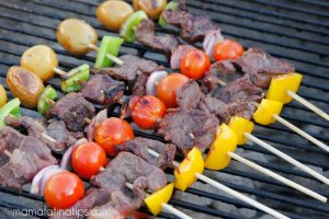 Soak wooden skewers for at least 20 minutes to help avoid catching fire while grilling the meat.