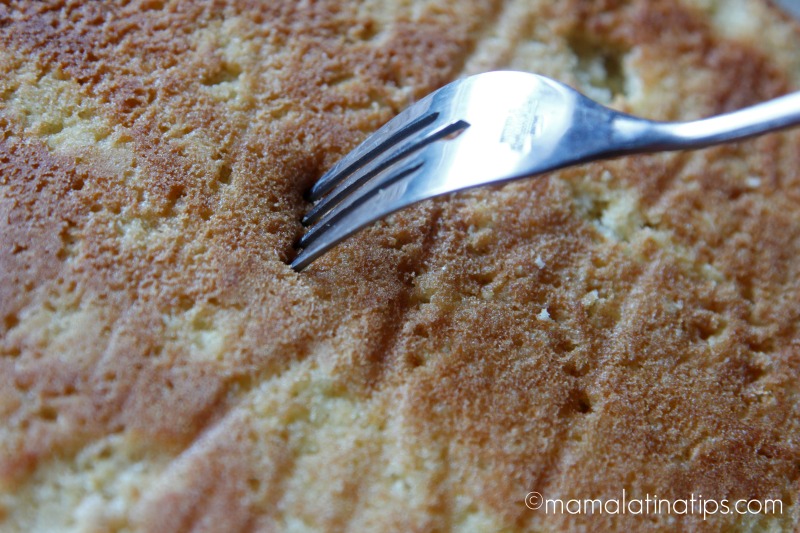 Con un palillo o tenedor haz algunos agujeros para que las leches penetren más fácilmente.