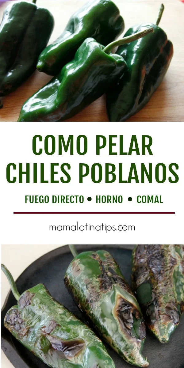 Hoy te mostraré como pelar chiles poblanos de varias maneras con un proceso paso a paso y video.