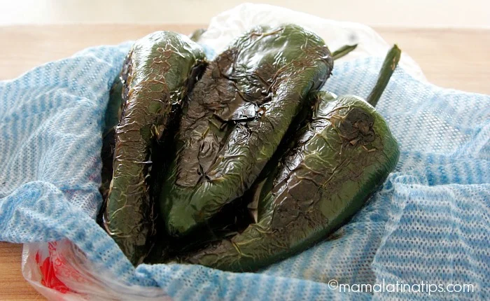 Tip: No permitas que los chiles se enfrien antes de pelarlos, estó hará el proceso más difícil.