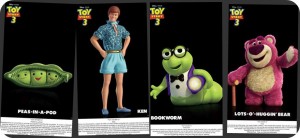 ¡Toy Story 3 ya esta a la vuelta de la esquina!  Se estrenará en cines el 18 de Junio y nosotros ya estamos más que puestos para ir a verla.  Y mientras se aproxima la fecha van saliendo mas detalles sobre esta linda película, como los nuevos 14 personajes que vendrán a compartir las aventuras de Woody y Buzz aquí estan sus nombres: Ken (efectivamente, el compañero de Barbie) Peas-In-A-Pod, Lotso, Buttercup, Trixie, Twitch, Stretch, Sparks, Mr. Pricklepants, Dolly, Chunk, Chatter, Big Baby y Bookworm.