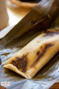 After steaming, turn off the heat and let them rest for 5-10 minutes. The tamales are ready when they come off the banana leaf easily.