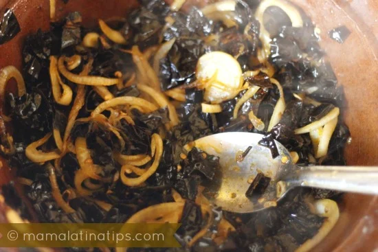 While the nopales are resting, slice the white onion and cut the chiles negros in small pieces. Heat the oil in a pan. When hot, add the white onions, chile negro and salt to taste. Cook them until soft, approx 5-8 minutes, stirring constantly. Add the nopales and let them cook together with the onion/chile mixture for a few minutes. That's all! For variation, add a few tomatillos finely chopped and cook them with the onion and chile negro.