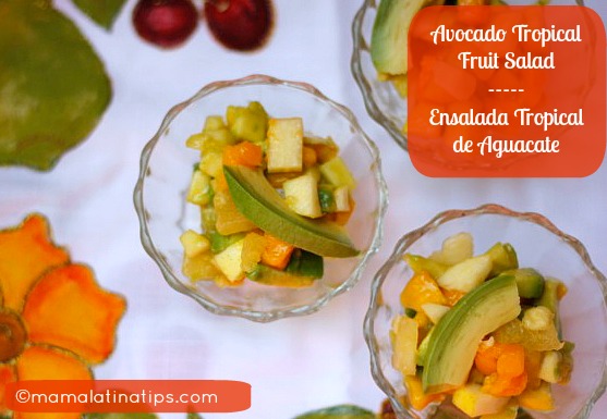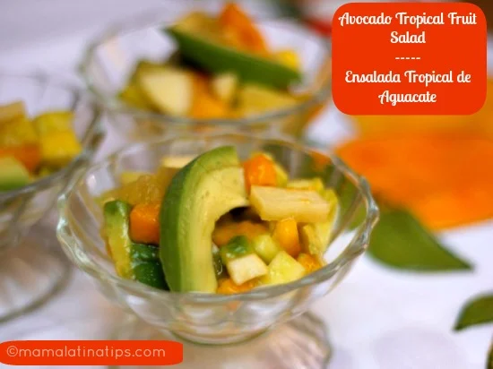 Yo he amado a los aguacates toda mi vida, en mis años de universidad acostumbraba comerme medio aguacate al día. Por supuesto en México cuando decimos aguacate inmediatamente pensamos en guacamole. Pero yo lo pongo a casi todo lo que como -sopas, ensaladas, sandwiches, quesadillas, tacos, omelets… y más. ¿Puedes ver la similitud aquí? todos los platillos son salados. Se que el delicioso y nutritivo aguacate es una fruta, pero honestamente, nunca lo he usado de esa manera. Así que por primera vez e inspirada por los colores y sabores de las deliciosas frutas tropicales que puedo ver en los mercados esta temporada de verano, he creado esta simple pero deliciosa ensalada tropical de frutas donde el aguacate es el rey!