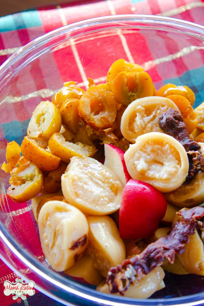 This one today is adapted to be more user-friendly in the USA. Some ingredients like the guayabas (guavas) and tejocotes (Mexican Hawthorn) in syrup can be found in the Hispanic foods aisle at your supermarket.