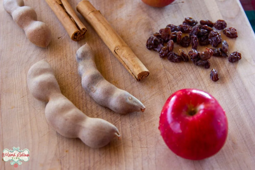 - Core and chop the apples. Peel and seed the tamarind pods. Seed and cut in half the tecojotes in syrup and halve the guavas in syrup.