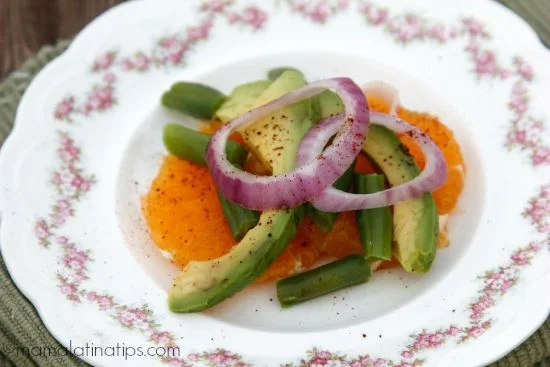 Avocado, orange, red onion and green beans salad by mamalatinatips.com