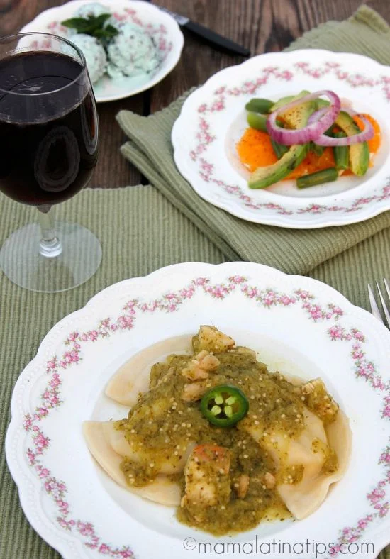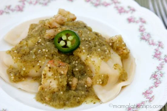 Place 3 pierogies on each plate, top with the chicken and salsa verde and enjoy. It's that easy!