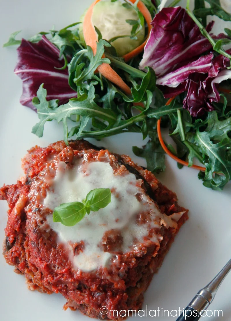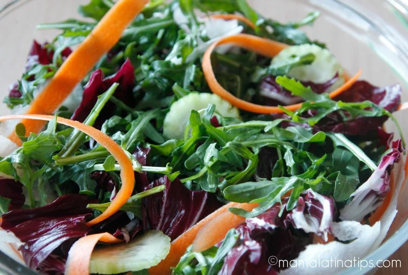 The green salad goes really well with the eggplant parmesan, here is my take on it.