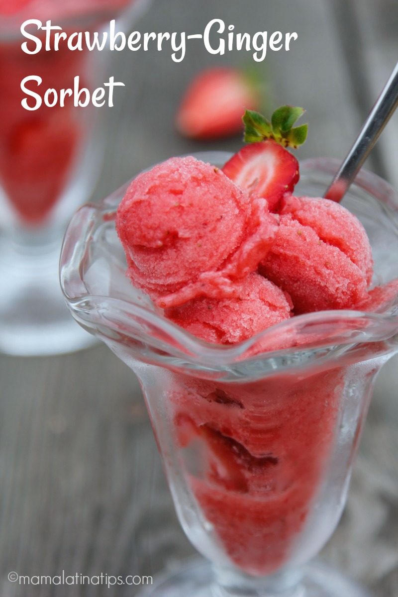 If you make this Strawberry Ginger Sorbet be sure to snap a photo and share it with us on social media using the #mamalatinatips hashtag. I’d love to see it and have a chance to share it as well.