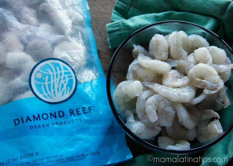 As for the shrimp, I chose Diamond Reef®, I love that the bag comes with 2 lb of peeled, tail off, raw shrimp. I just need to run it under a bit of cold water to defrost and the shrimp is ready to cook.