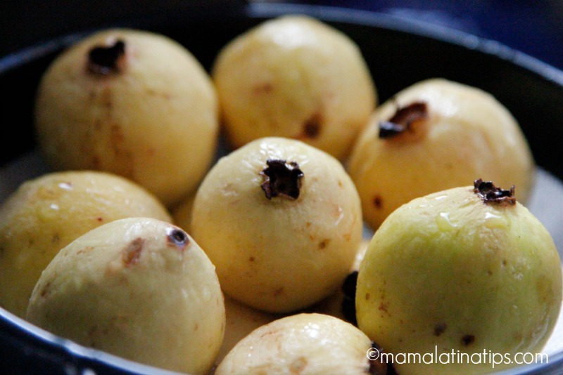 • 3/4 – 1 cup sugar depending on sweetness of the guavas. Start with 3/4 cup