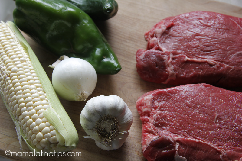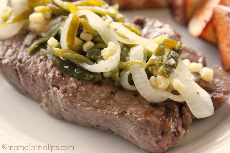 If you make this pan fried sirloin steak with poblano peppers and corn, be sure to snap a photo and share it with us on social media using the #mamalatinatipsrecipes hashtag. I’d love to see it and have a chance to share it as well.