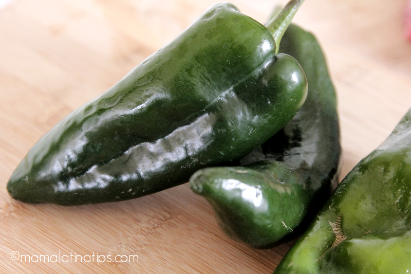 If you live in the United States, please be aware that sometimes poblano peppers are labeled as pasilla peppers. Just make sure you get the fresh bright green peppers as shown in the photo above.