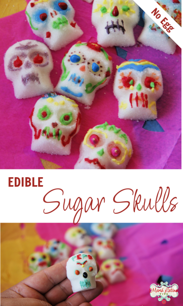 If you decide to make these edible sugar skulls, be sure to snap a photo and share it with us on social media using the #mamalatinatipsrecipes hashtag. I’d love to see it and have a chance to share it as well. Here’s the recipe.