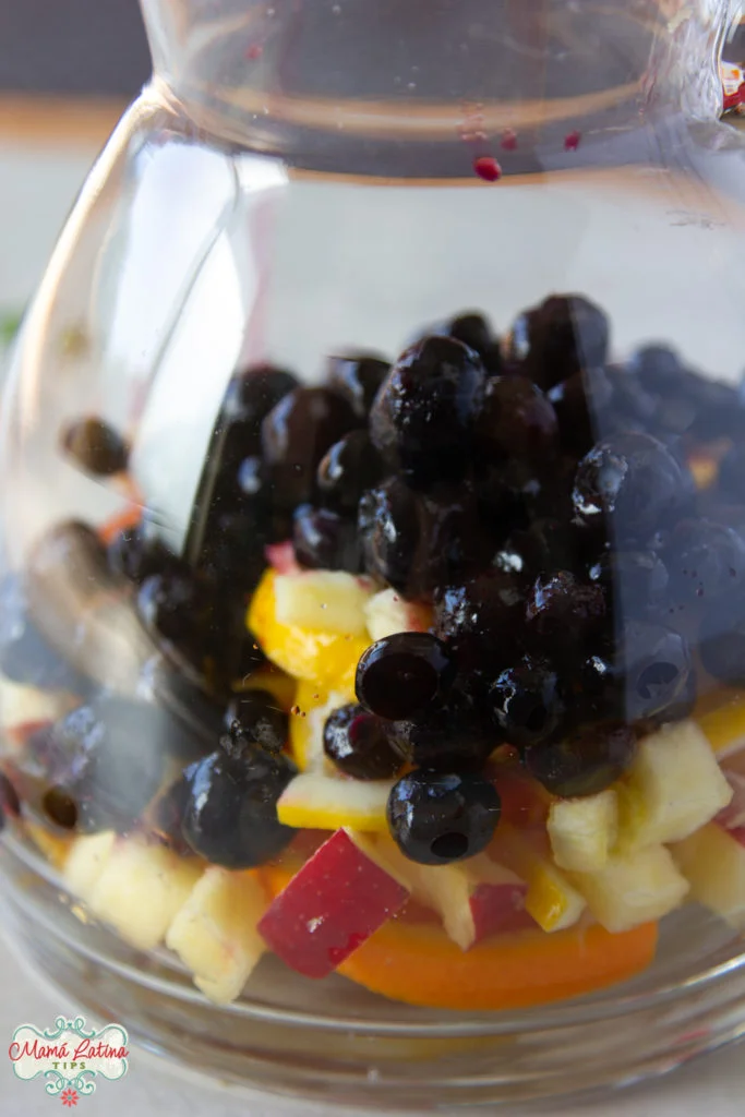 I love frozen blueberries because they freeze them at the peak of freshness from the moment they are harvested, and they allow me to enjoy fragrant blueberries any time of year. Just the thought of making this sangría any month of the year makes me smile.