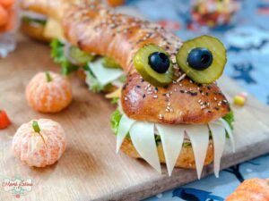 This cute Halloween Monster Sandwich requires minimum effort on your part while still allowing you to enjoy the taste and aroma of freshly baked bread. No mixing, no kneading, no messy prep. Learn how to make it with our step-by-step recipe. Let’s go!