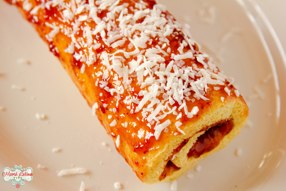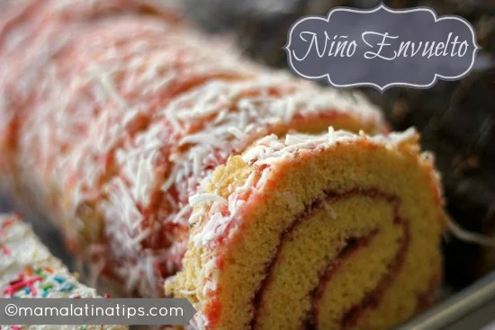 Pero para mí el niño envuelto original y auténtico, el que crecí comiendo es aquel relleno de mermelada de fresa y decorado con más mermelada y coco rallado.