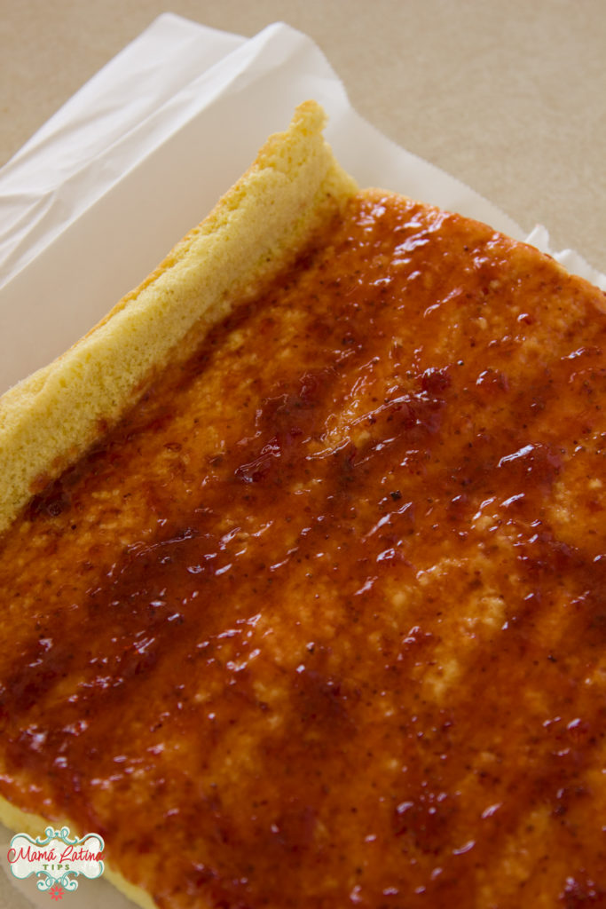 Otros rellenos: Aunque el auténtico pastel niño envuelto de mi pueblo está relleno de mermelada, también se puede rellenar de otras cosas. Sin embargo si tu relleno es de crema es necesario que dejes al pastel enfriarse completamente. (A diferencia de mermelada, la cual se puede esparcir aunque todavía esté tibio).