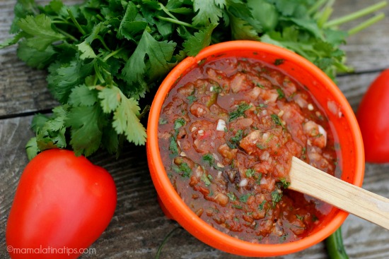 - Cilantro Fresco: Es la hierba tradicional para la salsa taquera. Si no te gusta, o quieres variarla, usa una cucharada sopera de orégano seco. Cuando uso esta salsa para chilaquiles es lo que le pongo.