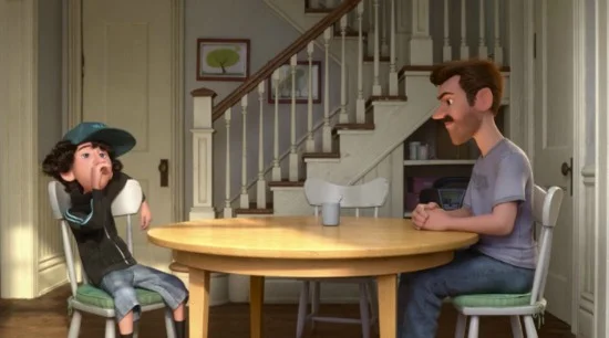 Cuando veas el corto, si es que no lo has hecho aún, verás que Jordan, el amigo de Riley tiene una gran parte en él. Cuando Josh y Mark estaban trabajando en el corto, los animadores de la película aún no habían diseñado la mente de Jordan. Así que cuando el director de Intensa Mente, Pete Docter, les preguntó, “¿Cómo quieren que la mente de Jordan aparezca en el corto?” y lo pensamos por un momento. Josh dijo “Quiero que haya rampas para patinetas y montañas rusas y todas esas cosas.” Y eso es exactamente lo que el corto muestra, así que en cierta forma el corto influenció la imagen de la mente de Jordan en el film.