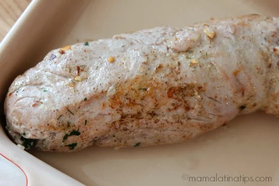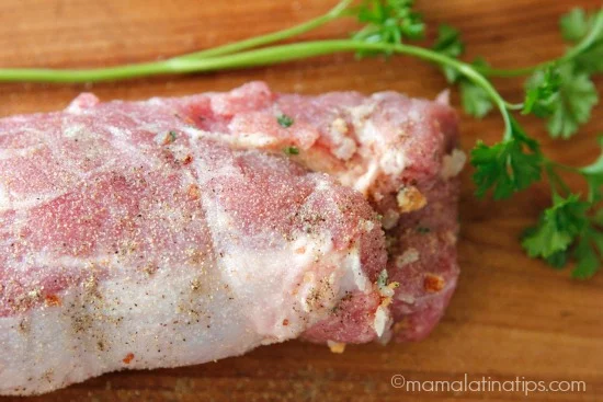 Una última cosa que me gustaría mencionar antes de darte la receta es que uno de los beneficios de cocinar con carne de puerco es que se cocina relativamente rápido, lo que es de gran ayuda. Esto por supuesto es una ventaja que puedes usar a tu favor durante todo el año, pero especialmente durante la temporada de fiestas cuando el horno se usa mucho y debes administrar bien tu tiempo.