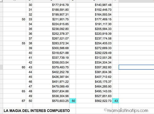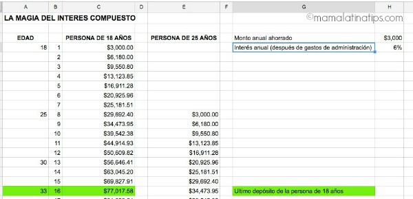 Esta lección fue realmente interesante para todos. El hecho de ver la hoja de cálculo con los números nos enseñó claramente porqué el de 18 años de edad tiene más dinero que el de 25 años, aún cuando él invierte mucho menos.