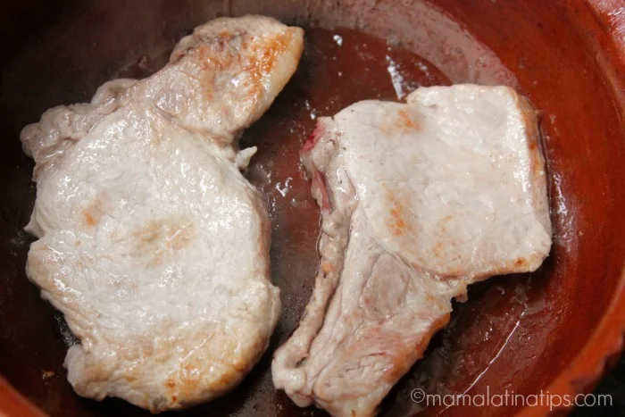 - Dora las chuletas, aproximadamente 2 minutos por cada lado. Verás como cambian del color rosado a blanco y toman un tono dorado en algunas áreas.