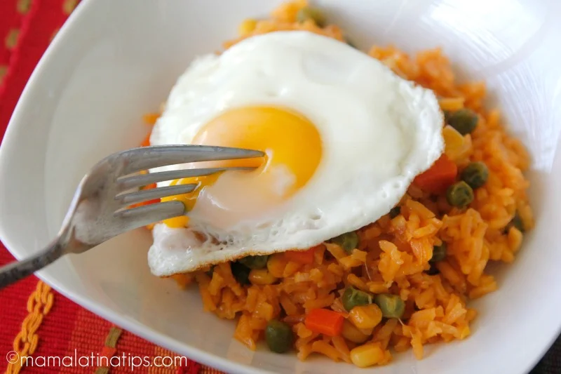 El arroz con huevo estrellado es uno de esos platillos que me remontan a mi niñez, dado que en México se come arroz casi todos los días, era muy fácil para mi mamá servirnos un tazón con un huevo estrellado, y ahora yo he copiado su idea.