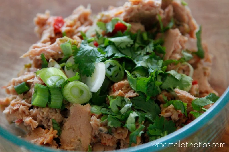 - Abre las bolsitas de atún Starkist® y mezcla con el cilantro y cebollín. Deja aparte.