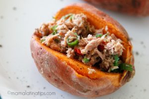 Estos camotes rellenos de atún con jalapeño son ideales para un almuerzo o comida ligera o como tentempié cuando andas a la carrera. Son fáciles de hacer, rapidísimos y saludables.