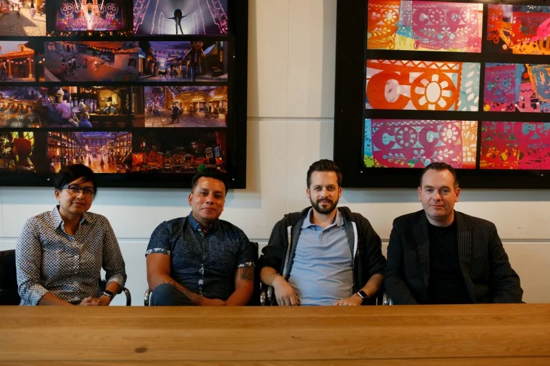 Una de las tareas más retadoras para los animadores de Pixar fue el darle vida a las calacas y presentarlas de la mejor manera posible. Daniel Arriaga (Director de arte de los personajes), Gini Santos (Supervisor de animadores), Byron Bashforth (Encargado del área de Shading) y Emron Grover (director de simulación) Simulation) nos dijeron que nunca antes habían animado calaveras y que darle vida a un símbolo de la muerte fue muy difícil.