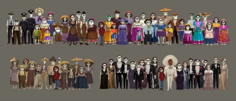 Dado que las calaveras tienen casi el mismo color, los animadores añadieron pintura en sus rostros para darles diferente personalidad.