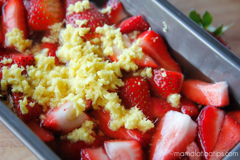 - Ralla el jengibre sobre las fresas y jugo de manzana. Mezcla bien.