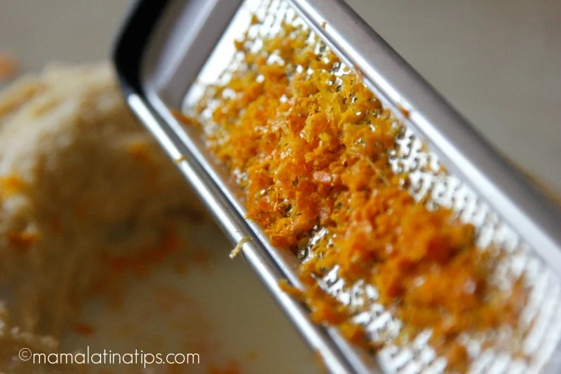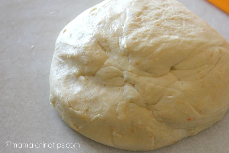 Añade la ralladura de naranja y sigue amasando y amasando. Notarás que la masa va ir cambiando, esto se debe al desarrollo del gluten.