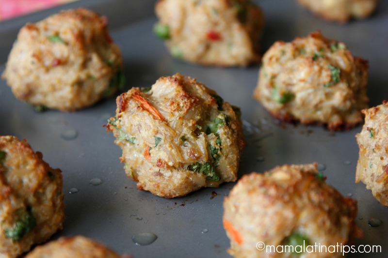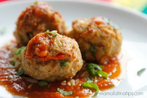 Si preparas estas albóndigas de pollo y arroz frito, asegúrate de tomarles una foto y compartirla en las redes sociales usando #recetasmamalatinatips nos encantará verla y tener la posibilidad de compartirla también.