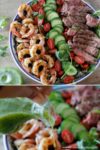 Cuando escuchas que un platillo es llamado “Mar y Tierra” o “Surf and Turf” en inglés se refiere a la combinación de un producto del mar y un producto de tierra, las más comunes son carne de res y camarones o carne de res y langosta. La ensalada de hoy es una balanceada combinación de carne Angus de res y deliciosos camarones asados. Anímate a prepararla.