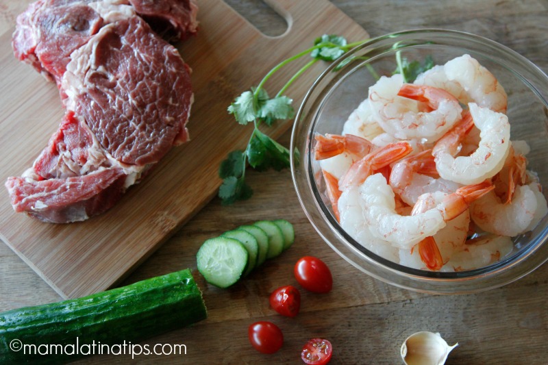 - Comienza con un muy buen corte de carne y camarones de tamaño mediano a grande.