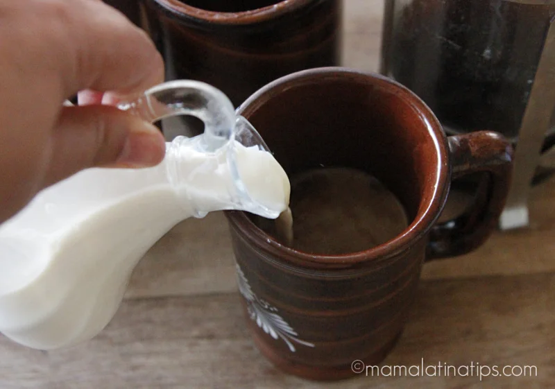 Nosotros usamos leche entera o leche evaporada, o una combinación de ambas con un poco de café, algunas veces vainilla. Y lo servimos con un poquito de canela.