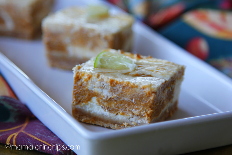 Si eres como yo, y me imagino que si lo eres, seguro te gusta hacer ricos postres para compartir con tu familia durante la temporada de fiestas. Estas bellezas de barras de queso y calabaza marmoleadas quedaron tan ricas que te invito a prepararlas durante esta temporada.
