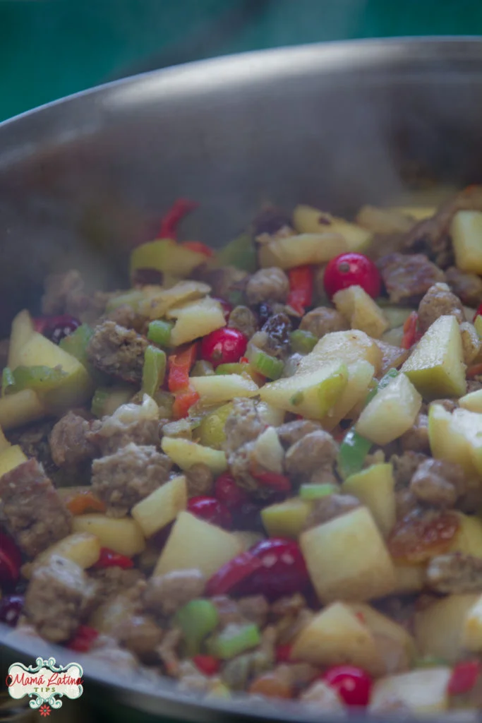 Este relleno de pavo con salchicha y pasas sorprenderá a tu familia con su color y sabor. Es agridulce por su combinación de carne, frutas y pasas. Mi receta además ofrece algunos tips para hacerlo rápidamente y con el menor esfuerzo.