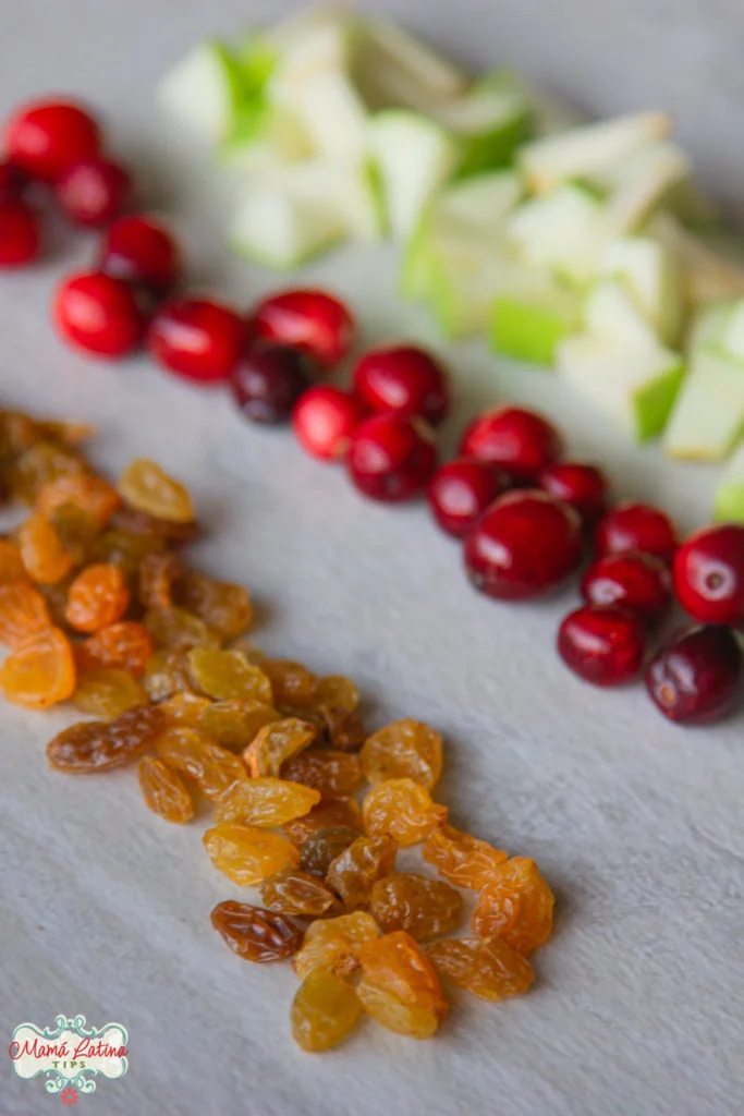 Las manzanas, arándanos y pasas rubias son ideales para crear un balance de sabores en este relleno de pavo.