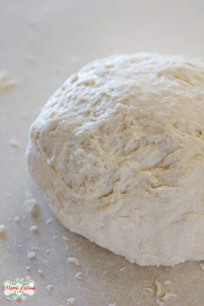 - No amases de más, sólo se requiere que los ingredientes se integren bien y formen una bola un poco rugosa. Esto tomará aproximadamente unos 5 minutos.