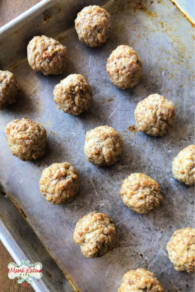 albóndigas sobre una charola para hornear