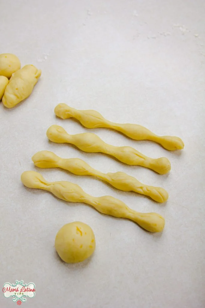 - Tip para hacer los “huesitos” más fácilmente: Limpia tu área de trabajo muy bien, no debe tener harina ni grasa. Cuando las hay, la masa no se pega y se requiere de un poco de resistencia entre la superficie y la masa para rodar y formar los “huesitos.”