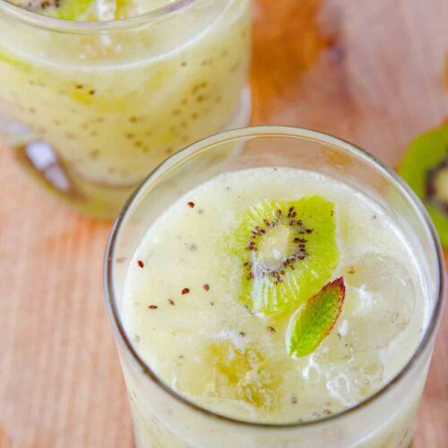 Esta agua es agridulce y tiene una textura cremosa. Ideal para tardes veraniegas. Puedes usar kiwi fresco o congelado.