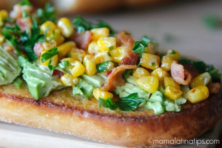 Bacon Avocado Garlic Toast with Corn