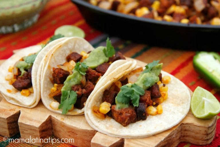 Chorizo Tacos with Roasted Onion, Corn and Avocado Salsa