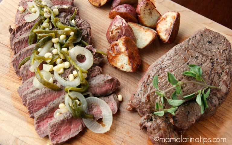 Pan Fried Sirloin Steak With Poblano Peppers and Corn